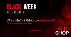 Verschenke Freude – mit einem Gutschein für unseren MP Shop! Noch auf der Suche nach dem perfekten Weihnachtsgeschenk?Mit unseren Gutscheinen liegst du immer richtig – ob für Musiker:innen, Musikbegeisterte oder alle, die schon lange ein neues Instrument, Zubehör oder Noten… Gutscheine für MP Shop – einfach verschenken! weiterlesen - Black Week vom 24. – 30.11.2025